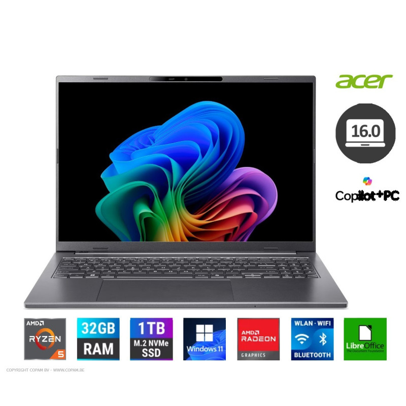 16 inch WUXGA IPS 1920 x 1200 AMD® Ryzen™ 5 8540U (6 Core, 4,9 Ghz Turbo, 6 Mb Cache) 16 Gbyte LPDDR5x 512 Gbyte SSD AMD® Radeon™ Graphics Bluetooth, Wifi 6 (ax) Microsoft® Windows™ 11 Home