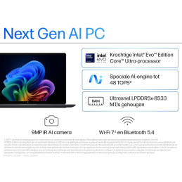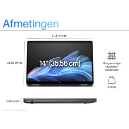 14 inch WUXGA 1920 x 1200 Touchscreen AMD® Ryzen™ AI 7 350 (8 kernen, 5.0 Ghz Turbo, 16 Mb Cache) 32 Gbyte LPDDR5 1 Tbyte SSD AMD® Radeon™ Graphics Bluetooth, Wifi 7 Microsoft® Windows™ 11 Home