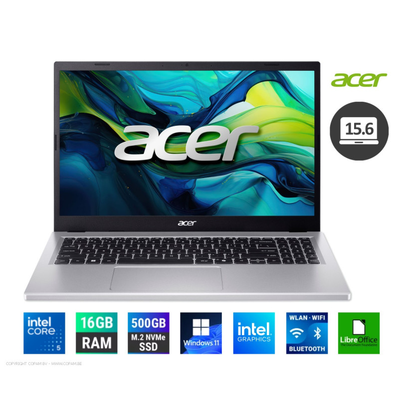 15.6 inch Full HD LED 1920 x 1080 Intel® Core™ i7-150U(10 Cores, 4.0 Ghz, 5.4 Ghz Turbo, 12 Mb) 16 Gbyte DDR5 512 Gbyte SSD Intel® Graphics Bluetooth, Wifi 6 (ax) Microsoft® Windows™ 11 Home
